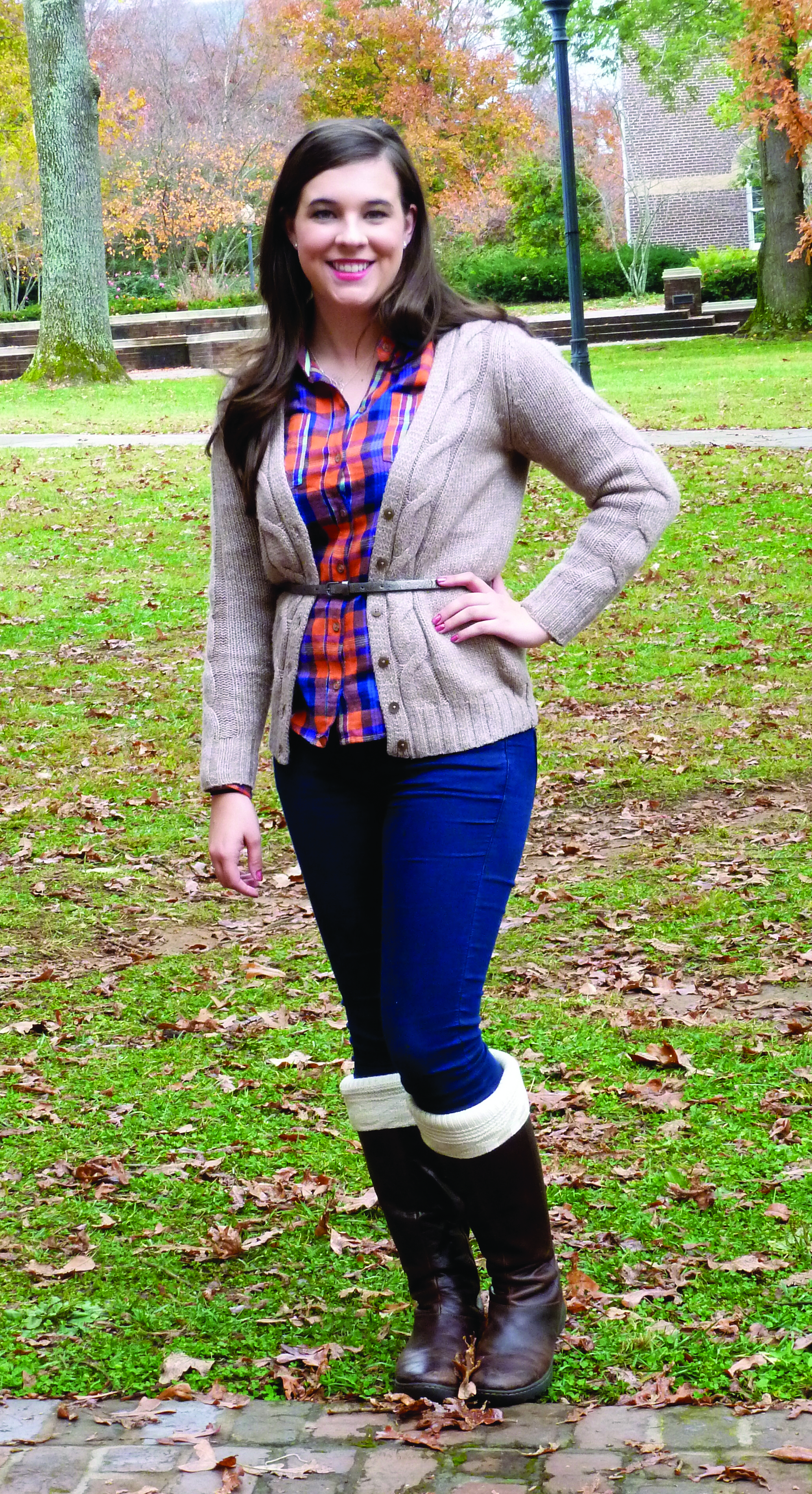 Just find clothes that make you feel comfortable, and just ooze “you.” Now that you are armed with an arsenal of clothes that you love, you need to do a little math. Here is the simple equation: top + bottom + shoes + accessories. It is not very scary, right? Based on your personal style, you fill in the various parts to the equation for the appropriate occasion. For example, my go-to class “uniform” for fall or winter is a top, which can be a shirt or blouse and a cardigan, and a bottom, like skinny jeans.