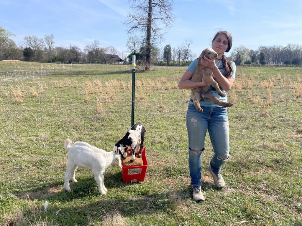(Left to Right) Loki, Moonshine, Ed and Dr. Julie Konkel are ready to teach the class about life at Konkel’s very own farm, From Scratch Farmstead.