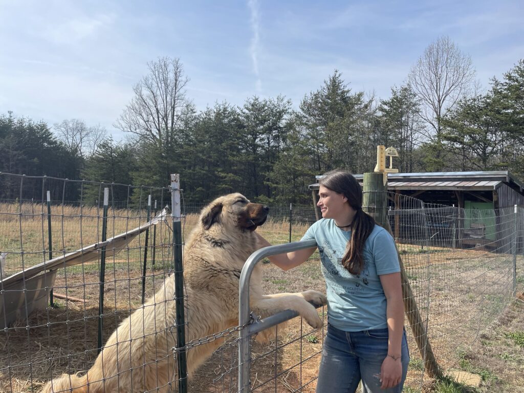 Jack, the guardian dog of the From Scratch Farmstead, letting down his guard with Dr. Julie Konkel.