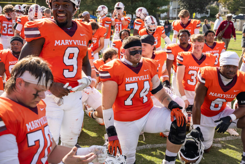 Maryville football team comes together to celebrate homecoming win. Courtesy of Andrew Wu