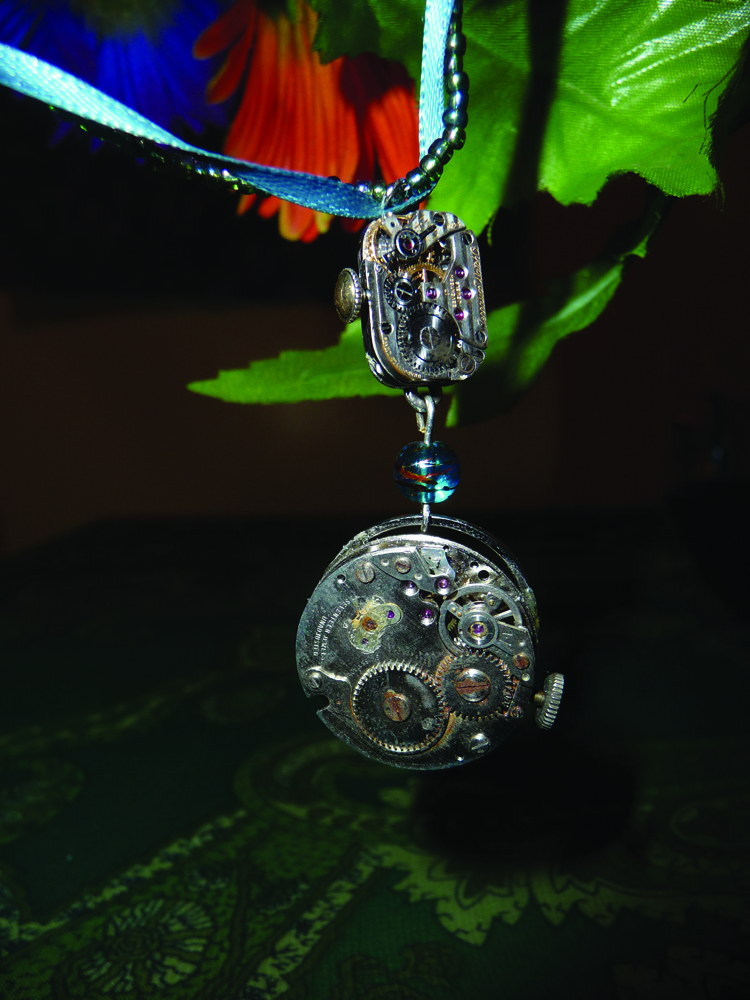 Katie Brobst transformed an old piece of jewelry in to a new one, using parts of an old watch for a new necklace. Photo by Katie Brobst