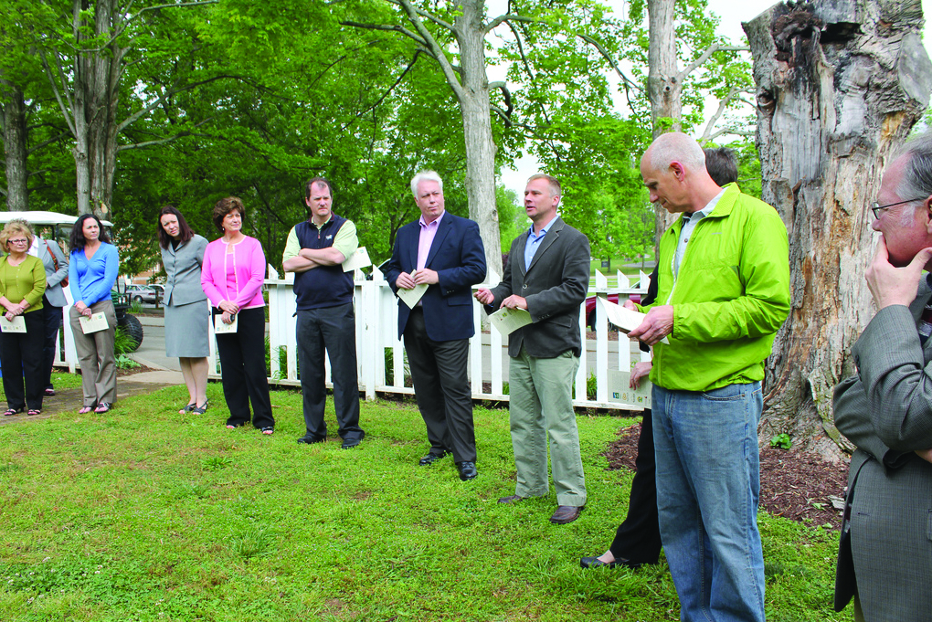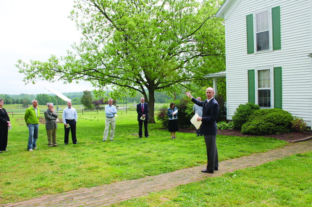 MC president Tom Bogart addresses visitors at the dedication ceremony for the solar array at Crawford House on Thursday, April 19. Photo courtesy of the MC Flickr website
