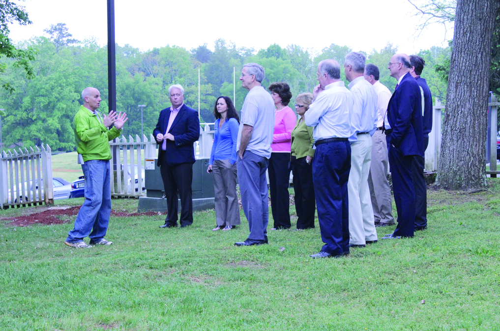 Bruce Guillaume, director of Mountain Challenge, explains how the solar array works to a group of visitors before the dedication ceremony. Photo courtesy of the MC Flickr website