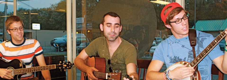 “We wanted them to start sharing ideas,” she said. MC students Chase Sterling, Patrick Dalton and Kegan Rinard harmonized guitars and banjo. Sterling sang, “Sink, Florida, Sink” by Against Me, among other songs.