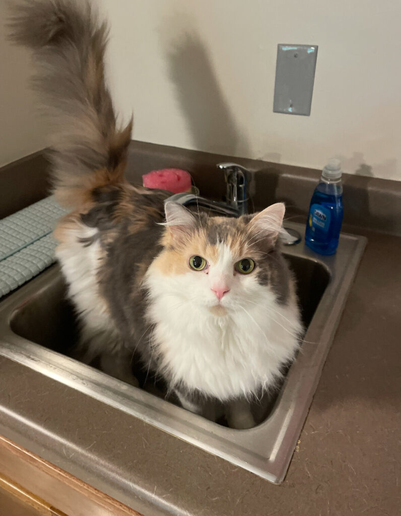 Prim stands in her sink, ready to help with dishes. (Photo courtesy of Megan Cooper.)
