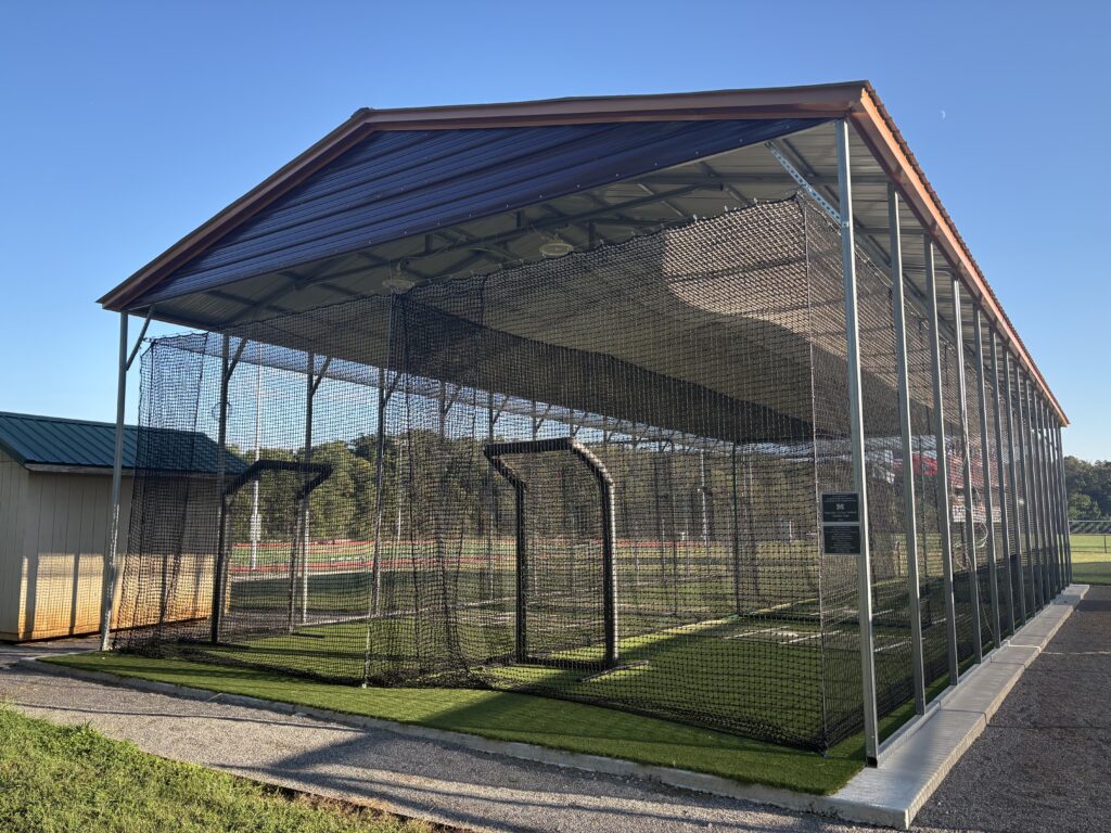 Newly built softball batting cage. Photo courtesy of Jacey Goetzinger.