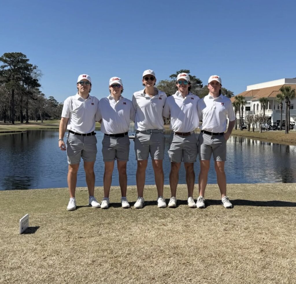 Maryville Men’s golf team at the Post City Classic, their first tournament for the spring season. Players (left to right): Jack Porter, Justin Sweeney, Jack Jacobsen, Will Beyer, and Pierce Shinavier. (Photo courtesy of Coach Mark Paluszak.)