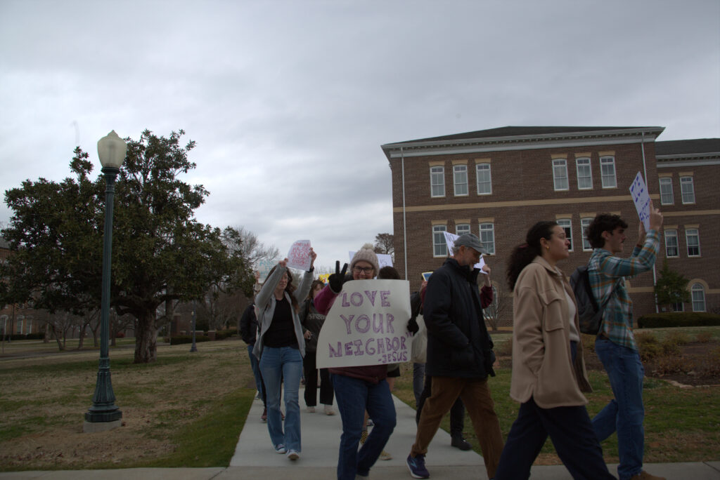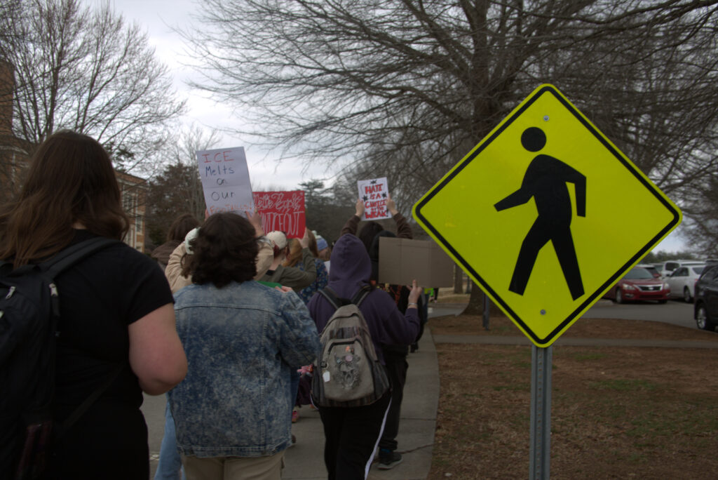 Maryville College students, faculty and staff take off on their first of two walks around the MC campus, protesting the recent infiltration of ICE agents in America.