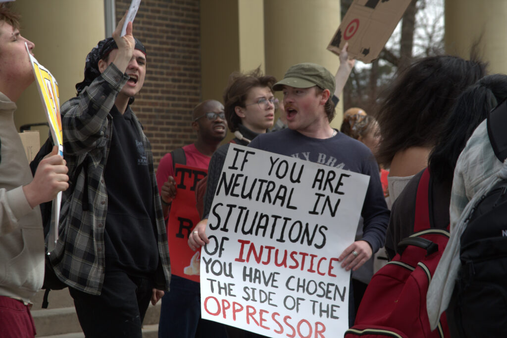 Josh Cornell (‘26) engages in the protest with a sign claiming hypocrisy to those who stay silent or neutral in times of protest.