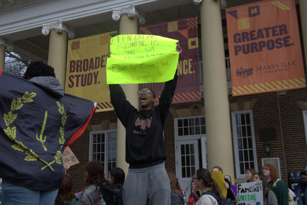 The protest makes its way across the MC campus, encouraging other campus members to join in.