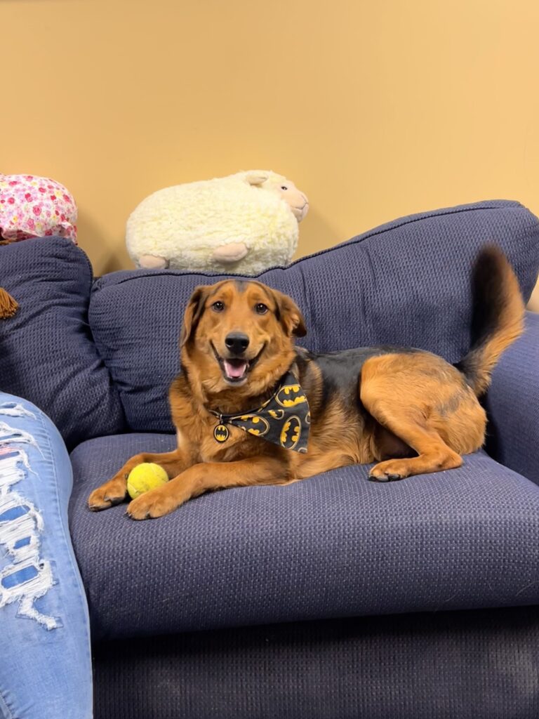 Batman likes to sit on the shop couch with students as they unwind from a hectic day. Photo courtesy of Sam Armour (‘27).