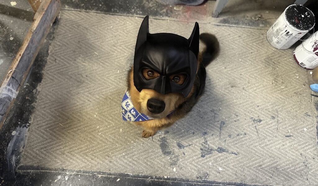Maryville College might not be in Gotham City, but that doesn’t stop a certain crime-fighting hero from visiting the campus. The Fine Arts department at MC has always provided students with resources they need to succeed, but this year they have a new support system. He has fluffy fur, a wagging tail, and an unbreakable love for plywood: Theatre Production Instructor and Technical Director Kevin Grigsby’s (‘05) dog Batman.