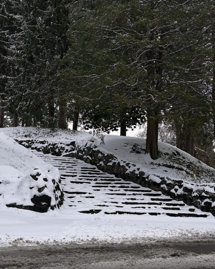 Snow covers the stone staircase behind Carnegie. (Photo courtesy of Ansley Hoard)