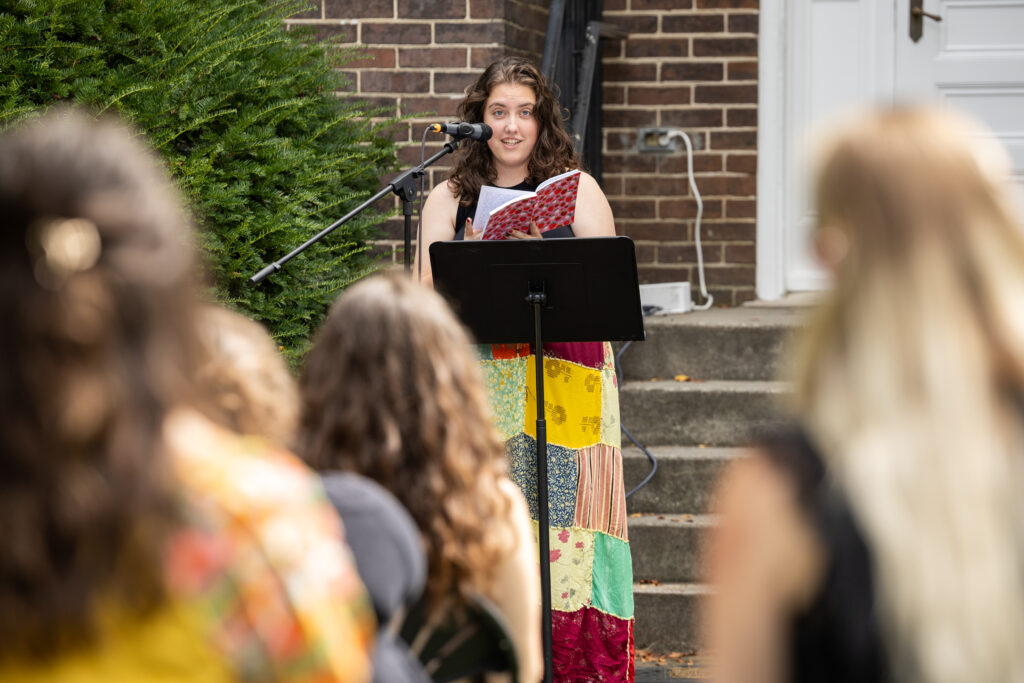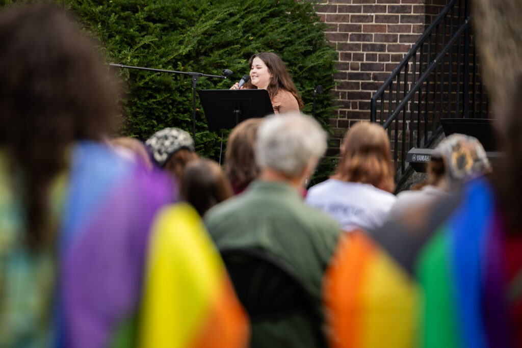 Katie Parnell (‘27), MC Pride Club President, encourages students to love one another to survive as a community. (Photo courtesy of Wes Hope)