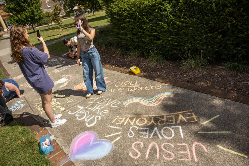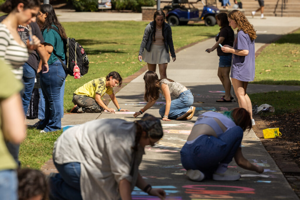 The Maryville College PRIDE Club and the Center for Campus Ministry co-hosted at Chalk Walk on the sidewalk in front of the CCM Tuesday, Sept. 30, 2025. (Wes Hope/Maryville College)