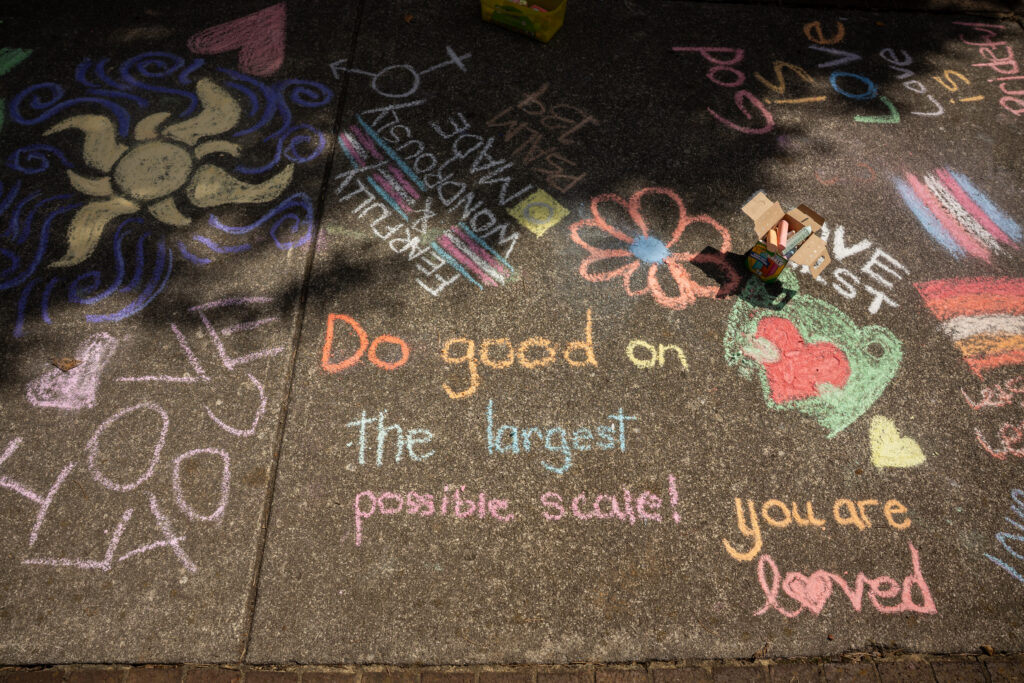 The Chalk Walk promotes solidarity between religious and queer communities, and provides people the opportunity to celebrate their existence and identities in a safe and public space.