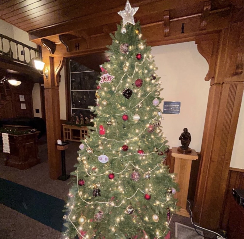 A decorated Christmas tree at The Hanging of the Greens. (Photo courtesy of the Center for Campus Ministry Instagram)